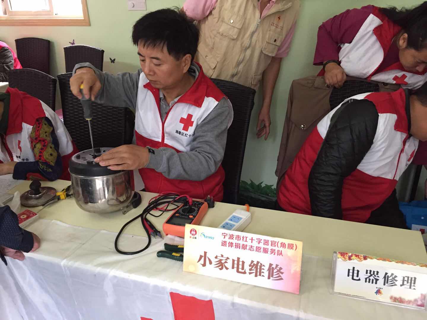 修傘、理發(fā)、義診、針灸按摩、測(cè)量血糖血壓……志愿者們用一次次辛勤的服務(wù)換來(lái)了老人們一張張燦爛的笑容!